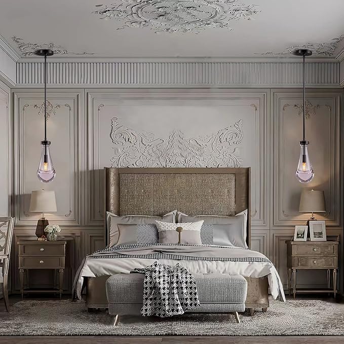 - 【Easy Installation】Morden glass pendant lights include 2 LED bulb with E12 base, all hardware needed for installation is included in the package, you just need to connect the wires and fix the base to the ceiling, place the teardrop glass shade, and the bulb. When cleaning, please take care to wipe with a soft dry cloth to prevent damage to the surface.