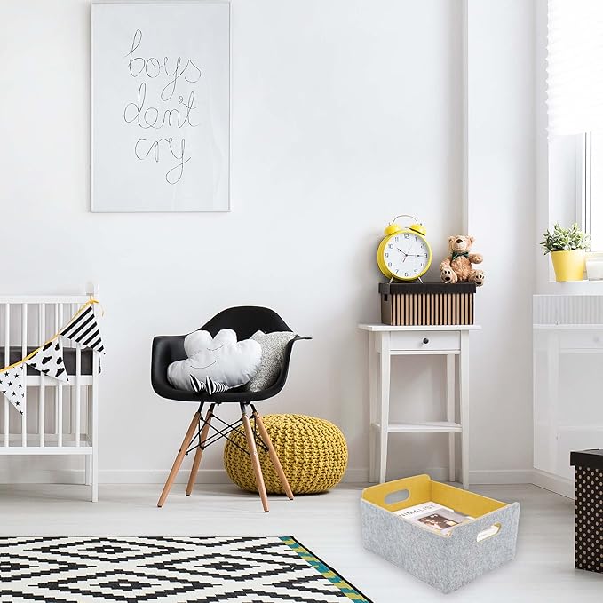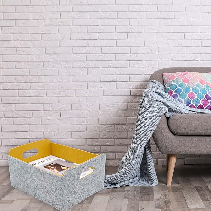 - 【Sustainable material】 Recycled felt with comfortable touch feeling, soft to prevent scratching,flexible for space saved up on desk, office ,bedroom, closet ,kitchen,bathroom or anywhere you desire with these stylish storage and organizer bins.