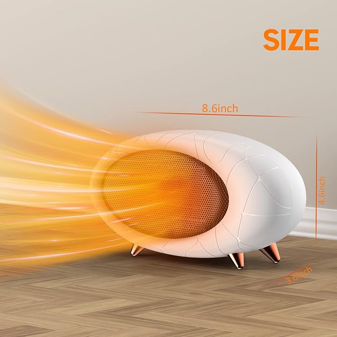 - 【PORTABLE DESK HEATER】 The dimensions is 8.6 x 4.6 x 3.6 in,1.22 lb,this personal heater takes up little space and is easy to carry around.Perfectly fits for indoor use such as home,bedroom,desk,office,etc.