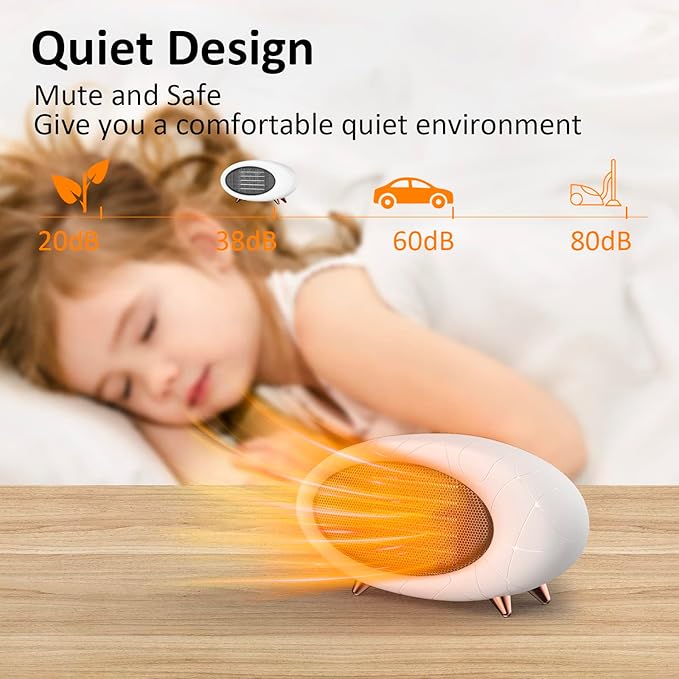 - 【QUIET DESIGN】The small heater is lower than 45 dB level,quiet enough for most people to use in a bedroom while sleeping,and it’s also extremely suitable for warming the room while reading,working,studying or watching TV,it won’t being disturbed