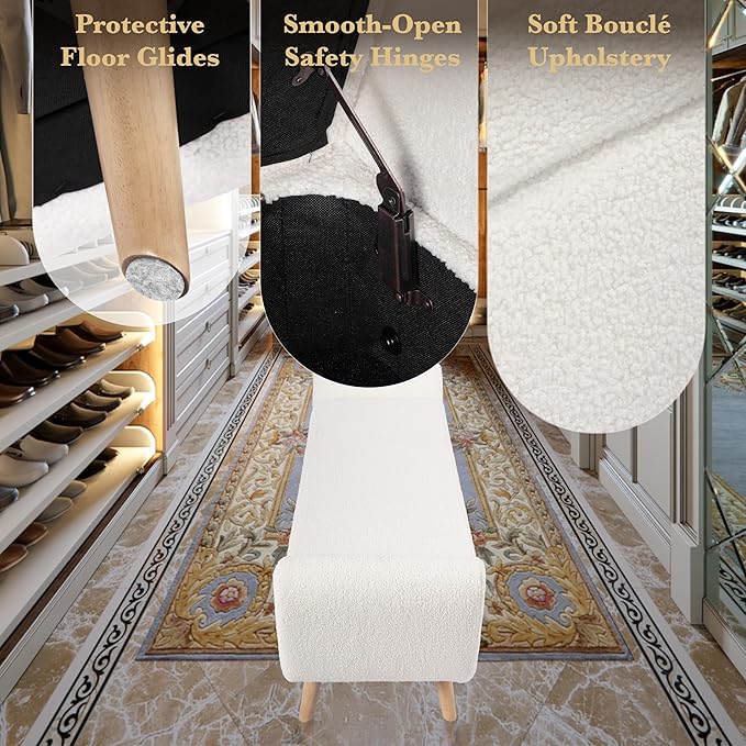 - ENTRYWAY BENCH: This bedroom storage bench is designed with functionality in mind. It can be used as a storage bench seat, allowing you to comfortably sit while keeping your belongings organized. Its spacious interior provides ample room to store extra blankets, pillows, or other bedroom essentials