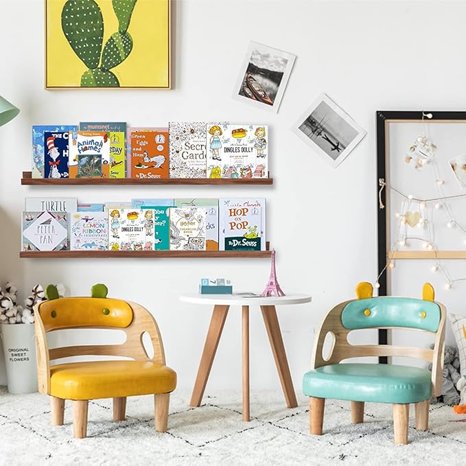 - Superior Quality:These picture shelves are made of solid wood, similar in color to light walnut.The surface of the floating shelves is flat with no visible chips around the edges.This wall-mounted bookshelf not only looks great, but is also very functional.
