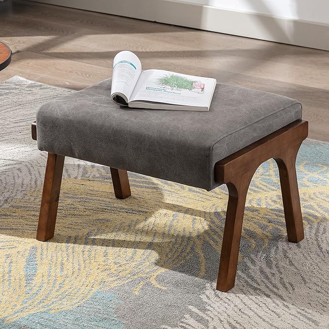 chairus Mid-Century Modern Accent Chair with Ottoman, Linen Fabric Armchair with Wood Legs Comfy Upholstered Single Sofa Chair for Living Room/Bedroom/Lounge, Grey
