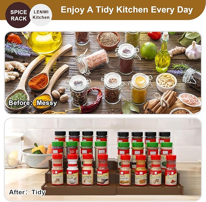- 【Extendable Design】The spice rack organizer is retractable and has a width range of 8.74" - 15.59". The width can be adjusted according to your needs, making efficient use of your storage space. Wonderful storage solution for spice jars