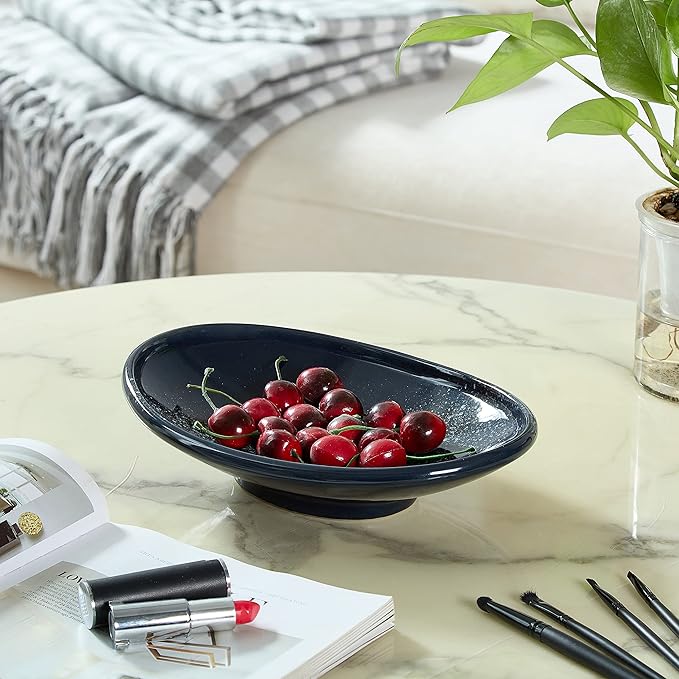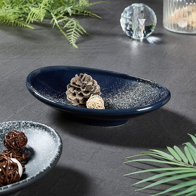 Oval Ceramic Decorative Bowl, Key Dish for Entryway Table, Small Home Decor Accent, Trinket Tray for Office Home Decor Gift (10'' Starrysky Blue with Glaze Layer)