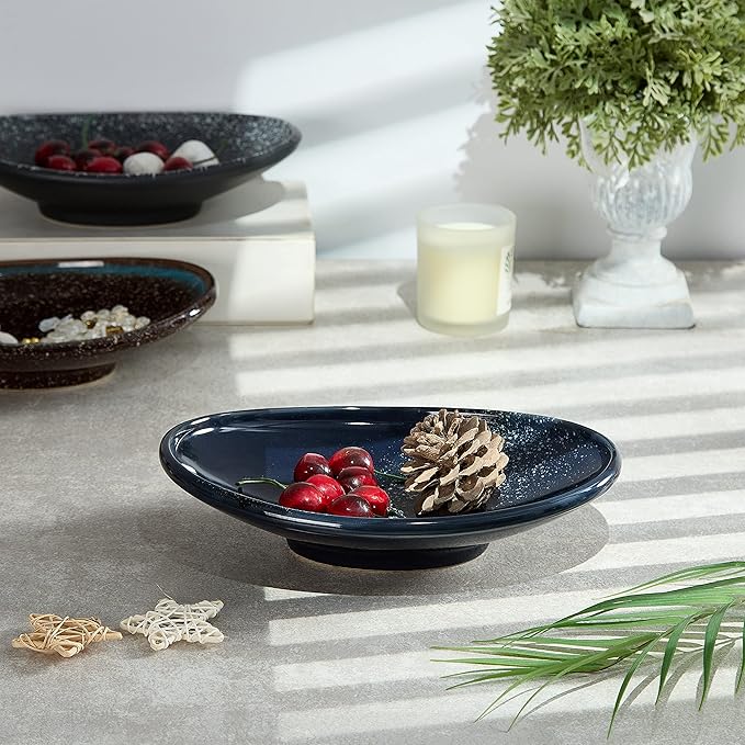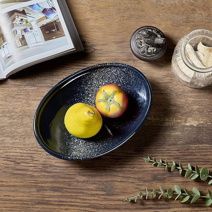 - [Artisan Design] The simple oval ceramic bowl with glaze layer is an exquisite artistic decor. In the blue bowl, the magical Starrysky Pattern with exquisite details is full of beauty of the nature and geometry. It is a perfect accent piece that fitting well into a modern or vintage décor style. Suitable Gift for familiy birthday, weddings, party and special occasions.
