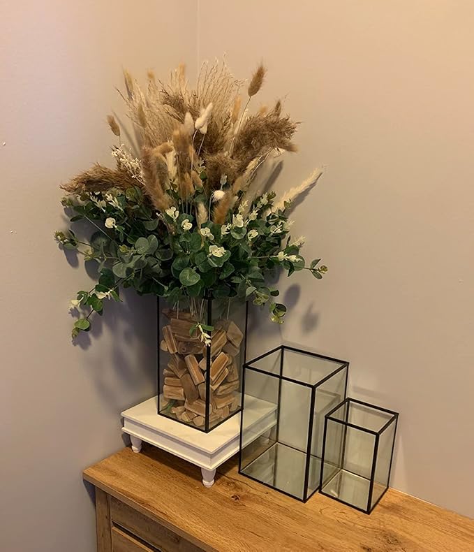 - 3 Different Sizes -- The square candle holders are 3 different sizes, which is so much more interesting to look at. They can meet your different needs. It can not only hold pillar candles, electronic candles or tea light candles, etc., but also some dried flowers, colored stones, fairy lights, makeup brushes or pencils.
