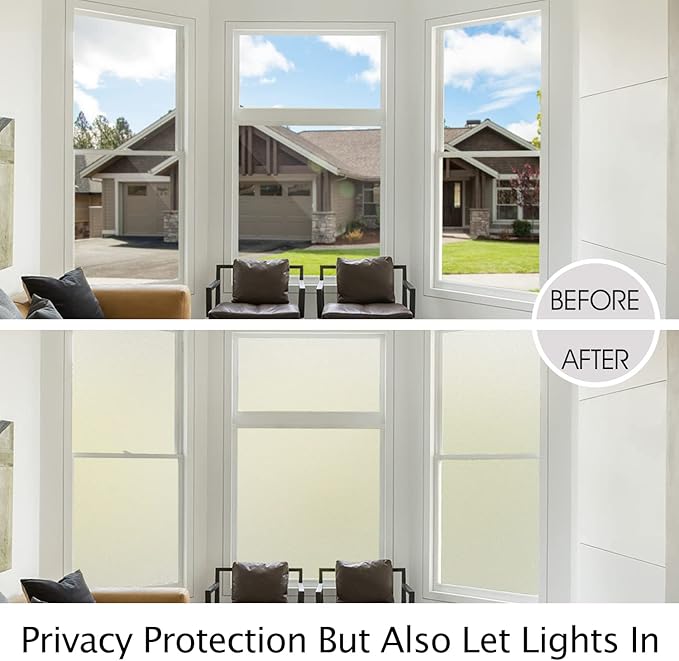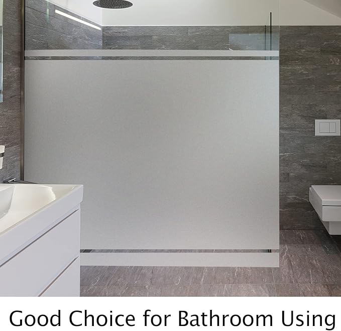 - ECONOMICAL FOR MULTI-SCENARIOS: No need to use heavy and expensive curtains or blinds, the glass frosting film is suitable for any FLAT, CLEAN, and SMOOTH glass door, window surfaces in the Bathroom, Balcony, Living Room, Bedroom, kitchen, balconie, cabinet, office, hotel etc. Note: Double-paned glass, cut glass and all processed glass is not workable for this frosted window film.