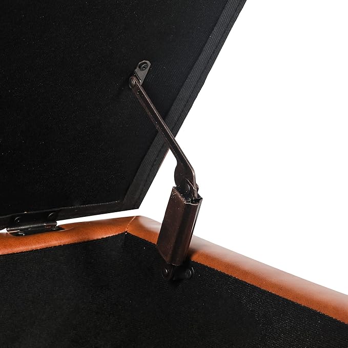 - 【SAFETY DESIGN】Constructed with a sturdy corner-blocked frame, padded hinged lid stays open for safe access to storage space inside.