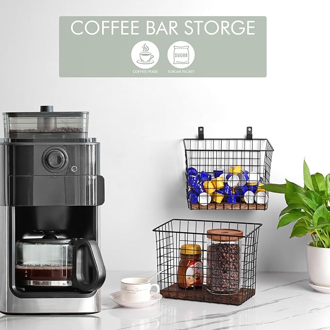 - Versatile for Everywhere - These big metal baskets help build additional storage capacity on the walls and organize items that might otherwise clutter up countertops or drawers. Use them for kitchen cooking utensils, vanity hair heating tools, entryway outdoor gear, home office documents and mail, garage tools, etc.