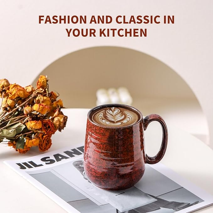 - JUST THE RIGHT SIZE: Whether you enjoy a morning coffee and breakfast at home or entertain friends with a milk beverage, this ceramic coffee cups with large handle is the perfect choice