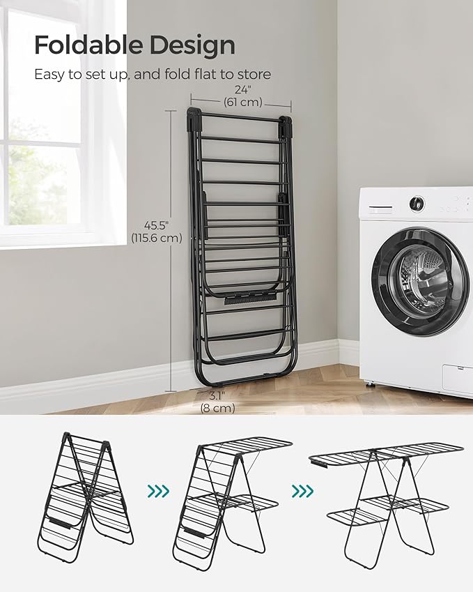 - No Assembly, Hassle-Free to Move & Store: No assembly is needed to get this laundry rack ready. Just open it up to use! And it's easy to fold the rack up to transport it to the laundry room or the patio, or stash it under your bed to save space