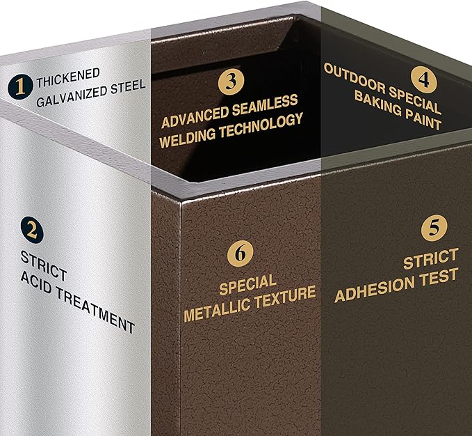 - 【METAL PLANT BOX】This planter box is made from a fully seam welded thick galvanized steel, and adopts outdoor special baking paint, giving the surface a premium metallic color and special texture through advanced powder injection process.