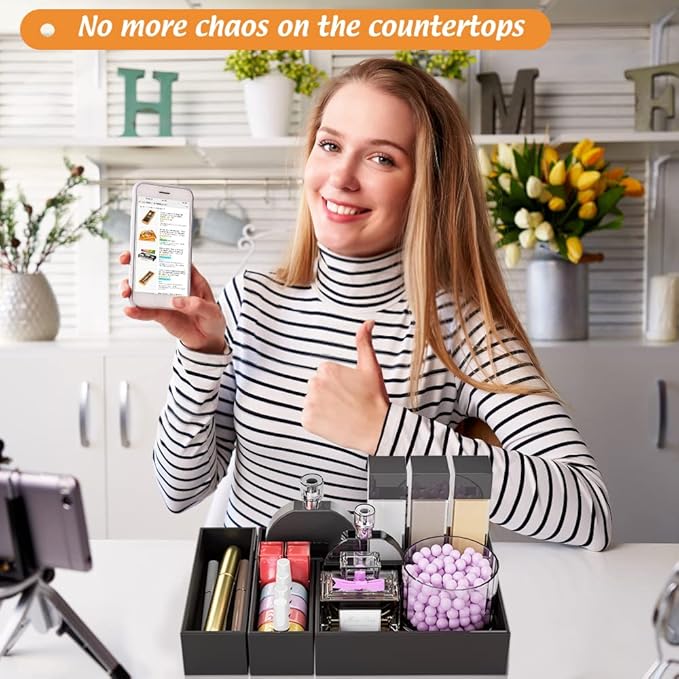 Black Bamboo Drawer Organizer - Silverware&Utensil Holder Organizer for Kitchen Drawers, Multi-Use Drawer Dividers Boxes for Bathroom Counter,Cabinet, Garage, Office Desk, Makeup, Jewelry (6"3"2.5")