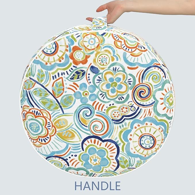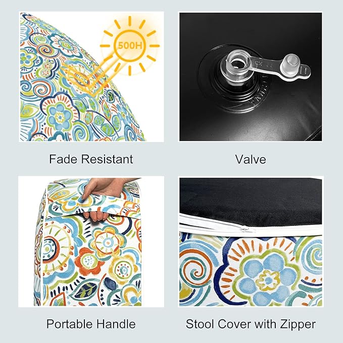 LVTXIII Outdoor/Indoor Inflatable Stool Ottoman, All Weather Patio Footrest Pouf, Portable Round Ottoman for Patio Garden, Camping or Home, D21xH9 Inches, Flower Blue