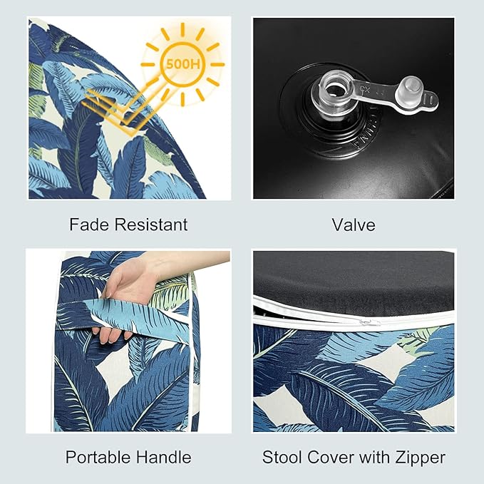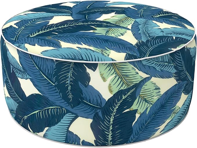LVTXIII Inflatable Stool Ottoman Footrest with Handle, All Weather Foot Rest, Indoor or Outdoor Use for Home Patio Garden and Camping, D21 x H9, Swaying Palms Blue