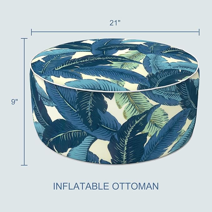 - Package Including: This bundle come with 1 pc indoor outdoor inflatable ottoman measures D21" x H9" (53 x 23cm). Made of durable and soft polyester fabric, sturdy inflatable PVC liner