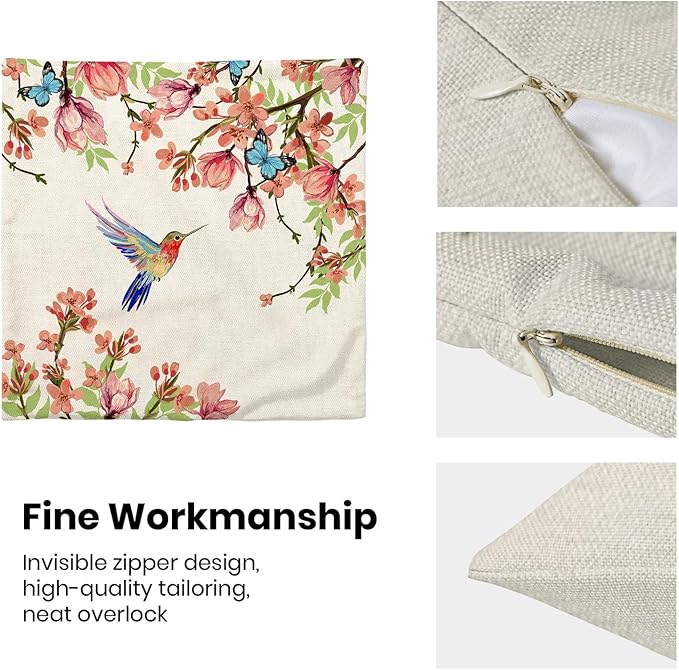 - 【Spring Pillow Covers】 Our pink flower throw pillow covers 20x20 inch are made of excellent breathable polyester linen fabric. The hummingbird decorative pillow covers is durable, soft and skin-friendly. The plant outdoor pillow covers adopt exquisite edging technology and four sides of our floral pillow covers are sewn firmly, which is not easy to open the line.
