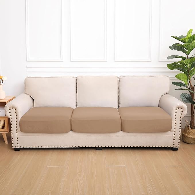 hyha Waterproof Couch Cushion Covers, Stretch Sofa Couch Seat Slipcover for Dog Washable, Non-Slip Waterproof Outdoor Cushion Covers for Patio Furniture Replacement (3 Pieces, Camel)