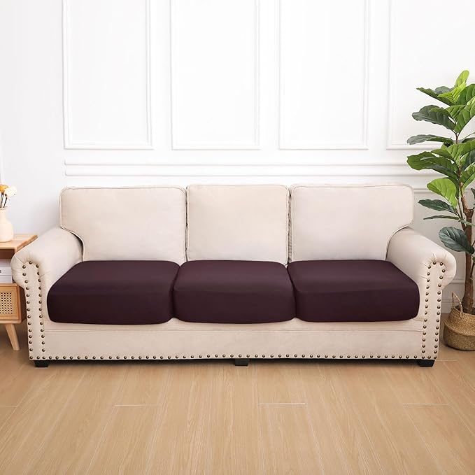 hyha Waterproof Couch Cushion Covers, Stretch Sofa Couch Seat Slipcover for Dog Washable, Non-Slip Waterproof Outdoor Cushion Covers for Patio Furniture Replacement (3 Pieces, Chocolate)