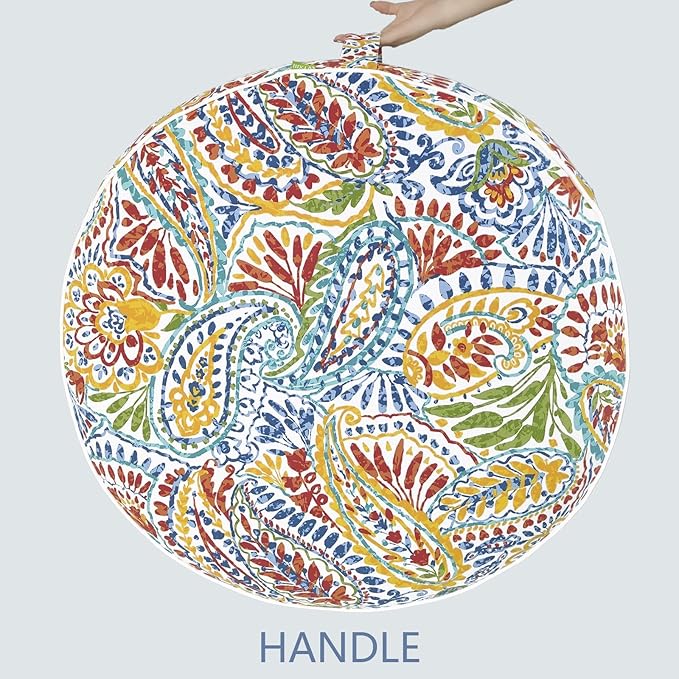 LVTXIII Indoor/Outdoor Inflatable Ottoman, D31 x H14 Inch Large Round Ottoman, All Weather Foot Rest Stool, Portable Footrest for Patio, Garden, Camping and Home - Paisley Multi