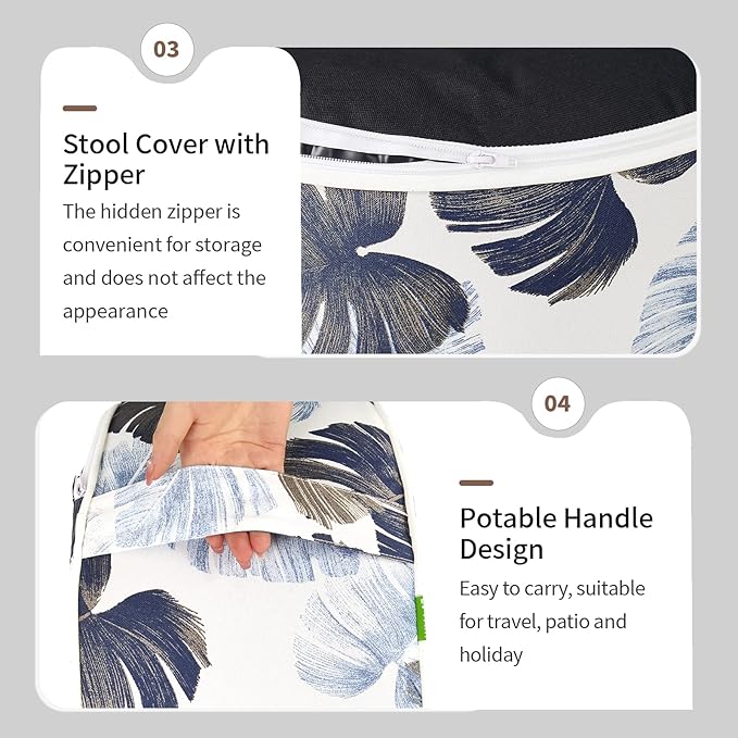 Inflatable Ottoman Stool D21 xH9 for Outdoor/Indoor Use, Water Repellent Patio Foot Rest Stool with Portable Handle,Round Pouf Ottoman Suitable for Garden,Deck and Camping - Monstera Blue
