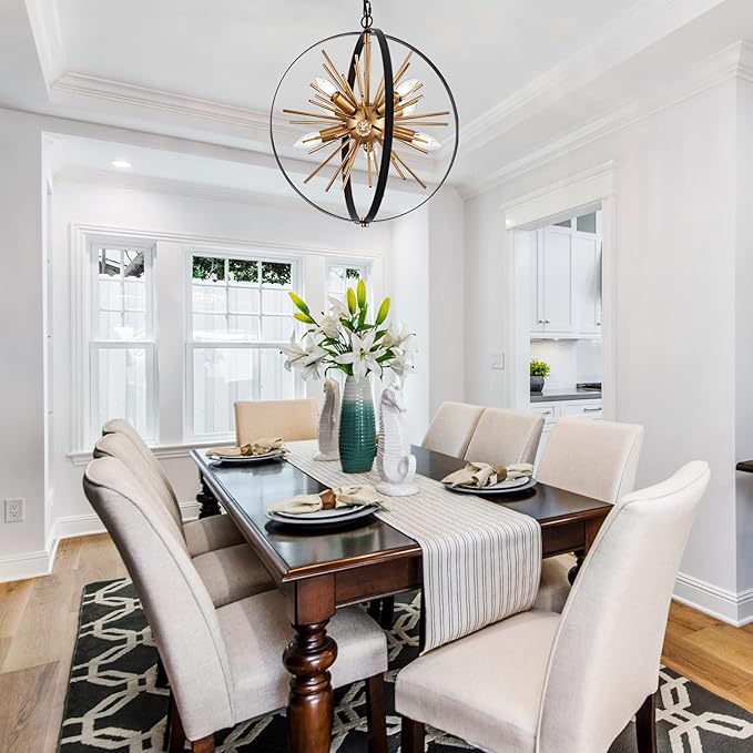 - 【Stylish Design】Check out the Black and Gold Sputnik Chandelier, whose stunning spherical shape resembles a well-preserved firework. When lit, it's like having a breathtaking firework show in your room. Perfect for your living room, kitchen island, dining room, hallway, stairway, entryway, café & restaurant.