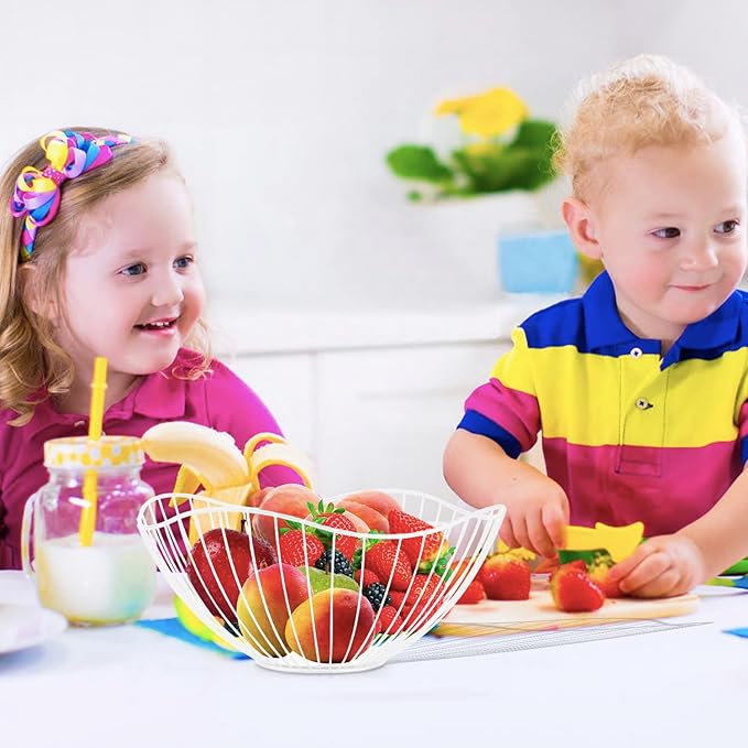 Metal Wire Fruit Basket, White Fruit Bowl for Kitchen Counter, Fruit Holder Stand Storage Baskets for Countertop, Home Decor, Table Centerpieces, Vegetable Bowls for Fruits, Veggies, Snacks (White)