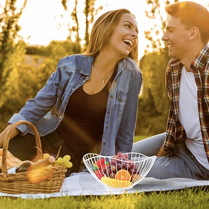 - Perfect Display & Safely Store: Wide open and mesh design allows air to flow to keep fruit to stay fresh longer, the metal wire fruit bowl is perfect for storing and displaying fruit, snacks, vegetables, potpourris or household and toiletry items