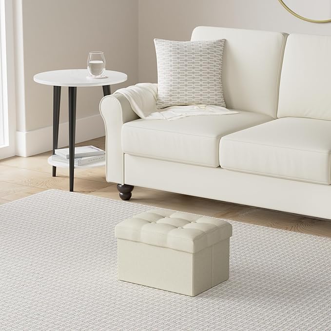 LINMAGCO Ottoman Storage Ottoman with Storage Small Foot Rest Stool Under Desk Stool Short Folding Footrest Linen Cloth Beigh 16X12X12IN
