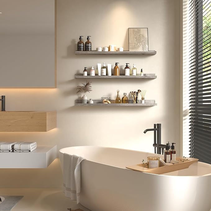 - Nice decoration: This wooden shelving unit features a wooden structure and grey finish, making it a perfect example of minimalist design. You can use these wood floating shelves to display picture frames, small plants, or decorations, and whether itβs a modern or vintage space, this gray wall-mounted shelf will add a touch of elegance and sophistication to your home.