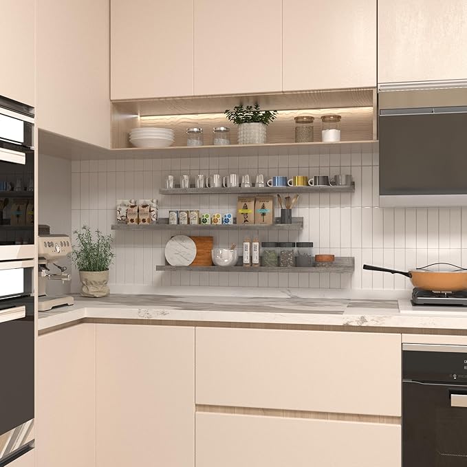 - Multi-functional storage: This large wall-mounted shelving unit provides ample storage space to keep your home organized and tidy. To meet your different storage needs in different places, this floating shelf set offers multiple storage spaces in different sizes.