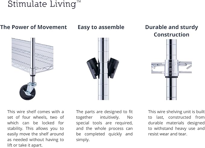 - ★COMMERCIAL-GRADE QUALITY AND NSF CERTIFIED★ Our Stimulate Living Wire Shelving units are constructed with premium-grade materials, ensuring that they can withstand the rigorous demands of commercial use while also being suitable for residential use. They are NSF / ANSI Standard 2 compliant, ensuring that they meet the highest standards of quality and safety for use in commercial and residential settings.
