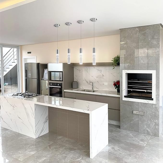 - 【Simple Modern style】:Modern pendant light stainless steel sconces and cylindrical crystal bubble lamp posts will add more luxury, noble, and artistic atmosphere to your home, let your island light add a high-end atmosphere to your kitchen.