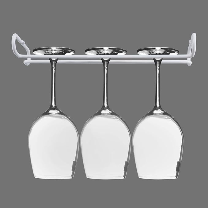 set 2 White Wine Glass Rack Under Cabinet Shelf 10 Inch Stemware Storage Hanging Hanger Organizer Glasses Holder with Drying Under Counter Metal for Kitchen and Bar