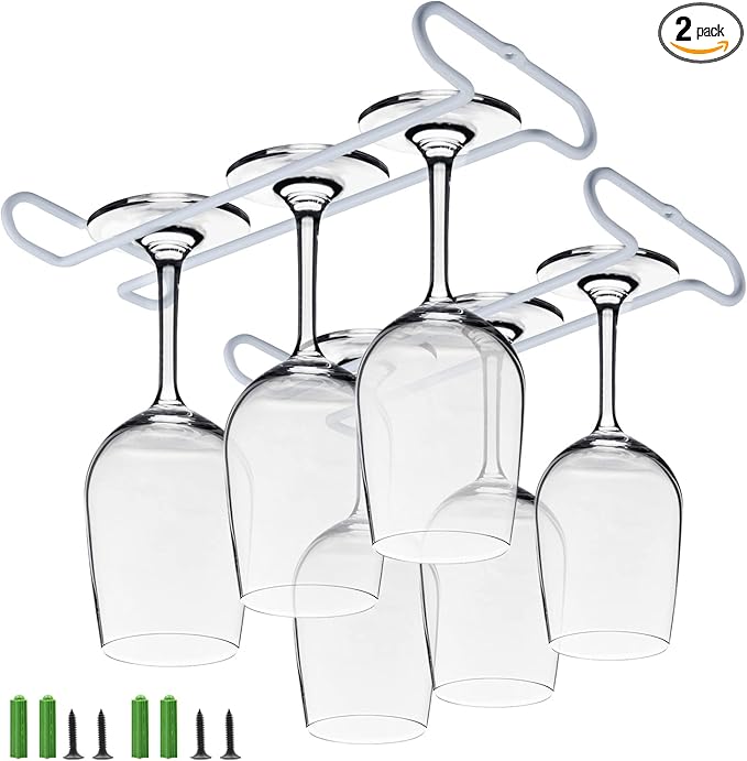- Easy installation. under cabinet wine glass holder Equipped with screws and anchors. Our sets include screws. Fits under most cabinets.