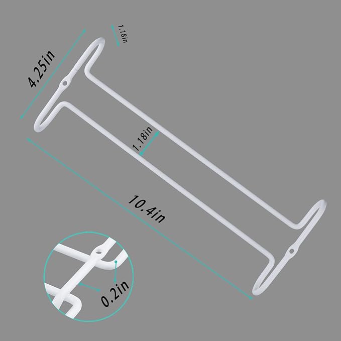 - wine glass rack under cabinet have to 4 sets per pack, Outer package:10.63*4.72*3.14inches(27*12*8cm). Product size: 10.4*4.25*1.18 inches (26*10.8*3cm).