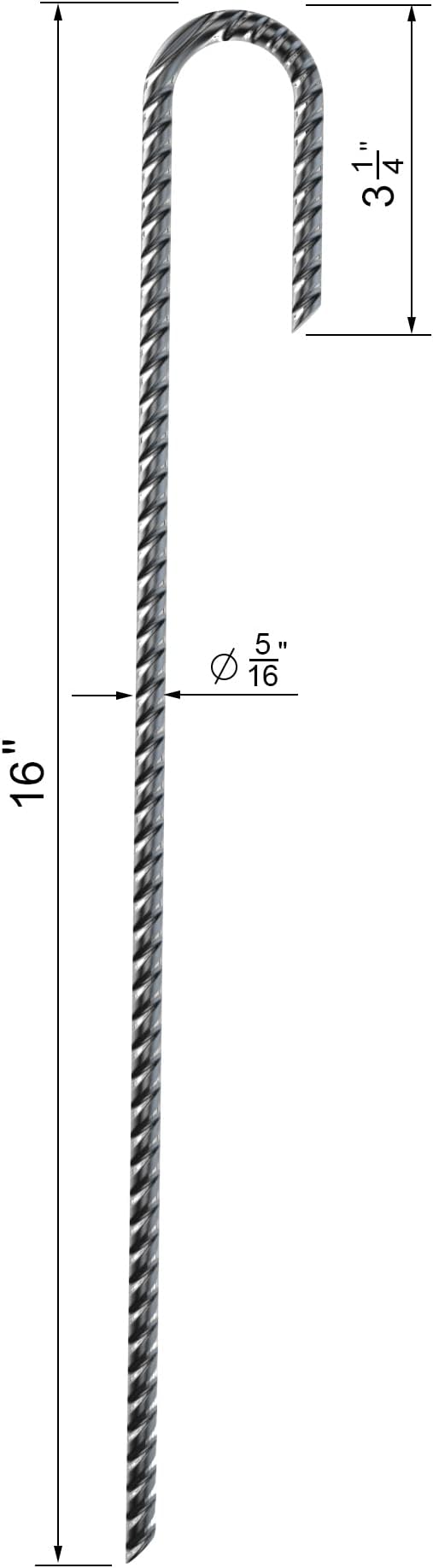 - SPECIFICATIONS: The rebar stakes are 16 inches long and 5/16 inches in diameter.