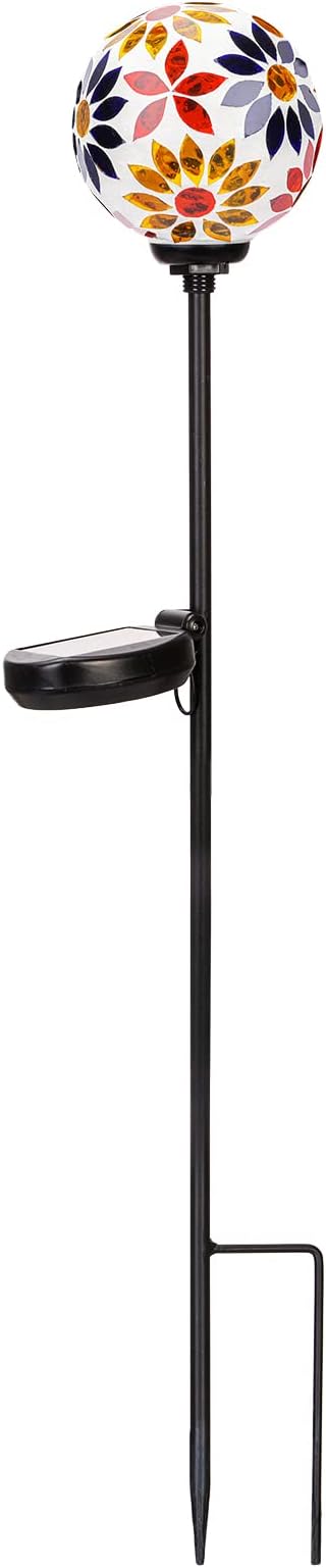 Afirst Solar Lights Outdoor Decorative - Solar Gazing Ball Mosaic Garden Stakes Flower Decorative Lights Waterproof for Pathway Yard Lawn Decoration Orange