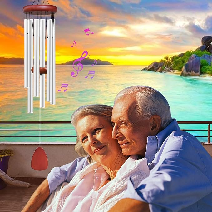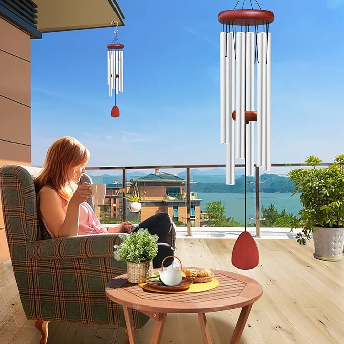 Large Aluminium Wind Chimes Outside, Soothing Melodic Memorial Sympathy Wind Chime, Suitable Outdoor Garden Decor, Gift for Mom Women Neighbors (Silver Wind Chimes-36)