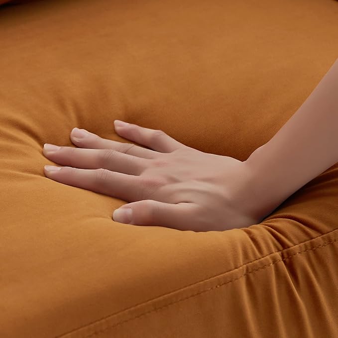 Extra Deep Accent Chair, Fabric Upholstered Comfy Reading Armchair for Living Room, Bedroom Single Seat Sofa Chair with Wood Base, Curry