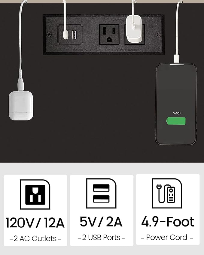 - [End Table with Charging Station] This side table with 2 AC outlets, 2 USB ports, and the 4.5 ft extension cord helps you charge your phone, tablet, lamp, and game console at the same time. Also, the distance between each outlet and port prevents adapters from blocking each other.