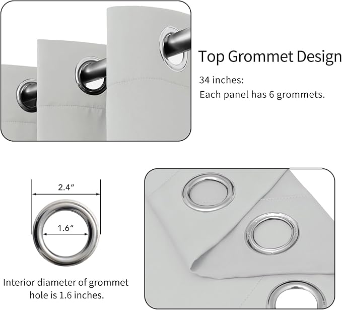 - Easy to Install: Each curtain panel has 6 silver metal grommets on top. Each grommet inner diameter is 1.6 inch, fits easily with standard curtain rods. Easy to hang, and slide smoothly. Perfect for office, bedroom, living room.