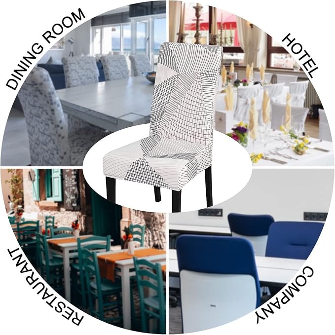 JQinHome White Chair Covers for Dining Room Set of 4, High Stretch Removable Washable Parsons Chair Slipcover for Home Party Hotel Wedding Ceremony (4PCS, Geometric)