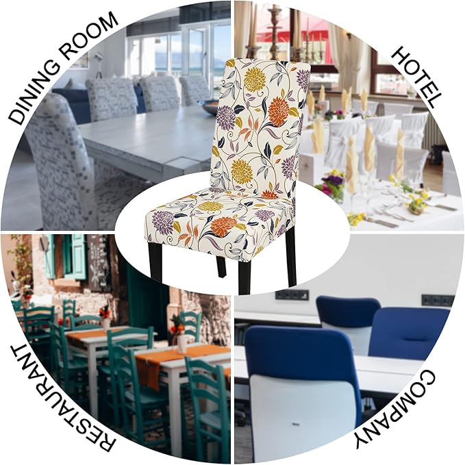 JQinHome Pattern Chair Covers for Dining Room Set of 4, High Stretch Removable Washable Parsons Chair Slipcover for Home Party Hotel Wedding Ceremony (Flower,4PCS)