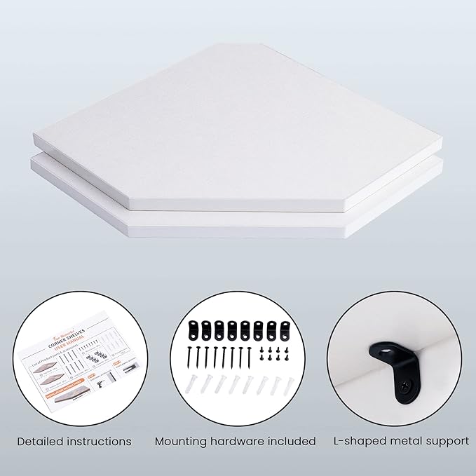 - 【Easy to Mount】The package comes with user-friendly instructions and all the necessary mounting hardware. Just place the corner wall shelf level in your desired location and secure it in place using the hidden bracket connectors provided, followed by screws