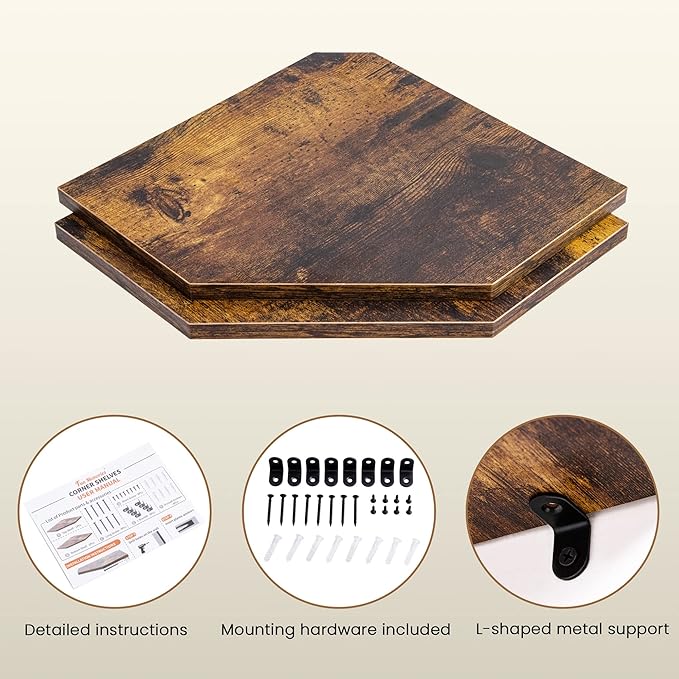 - 【Easy to Mount】The package comes with user-friendly instructions and all the necessary mounting hardware. Just place the corner wall shelf level in your desired location and secure it in place using the hidden bracket connectors provided, followed by screws