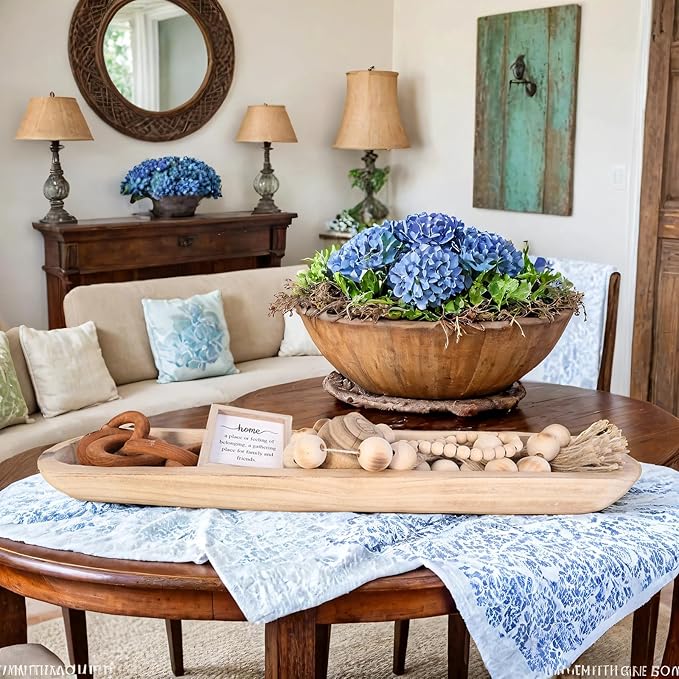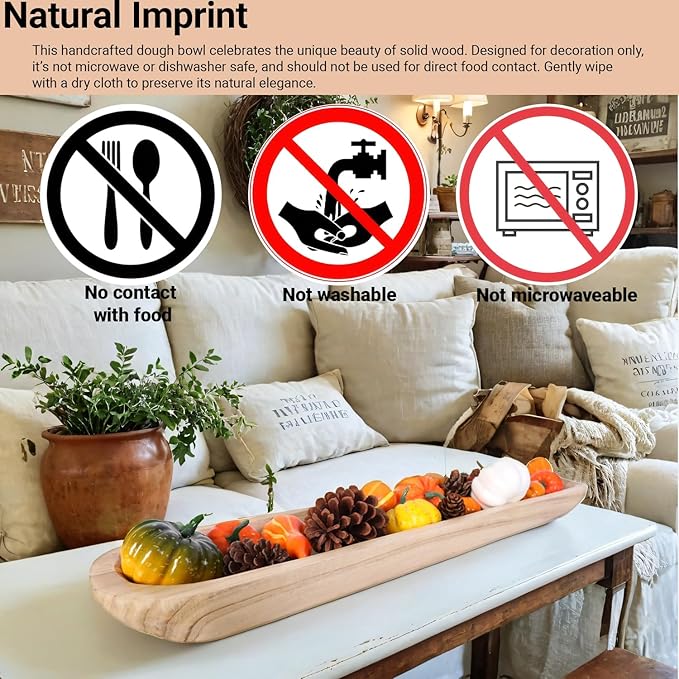- 【Multipurpose】Wooden dough bowls for decor centerpiece on kitchen counter, entryway table and MORE! A long wood bowl is also good as a trinket tray for small objects such as keys, jewellery, and cosmetics. It can be placed anywhere in the home, such as the dining room, living room, bedroom, garden, etc.