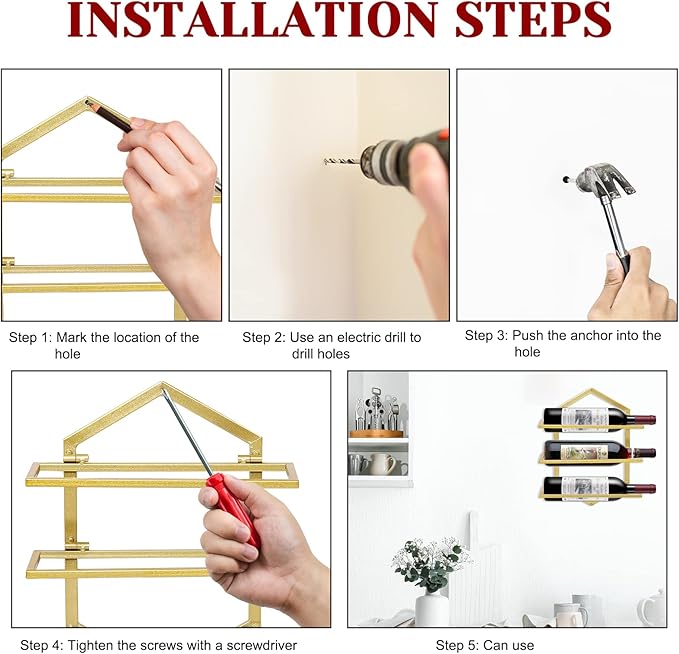- 【Easy to Install】Enjoy quick and easy installation of your wall wine bottle and glass holder with the easy to use mounting hardware included, which can decorate any wall space and has an important decorative effect.