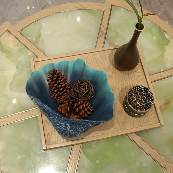 - 【Size】This Caribbean Blue Seashell decorative bowls made from 100% solid resin, -3.6" tall, 10.23" wide and 8.6" deep approximately. Clamshell decorative bowls Sufficient for home Bathroom Shelf,Room Console,Coffee table,Office Desk,Window Edges and a perfect idea for beach house decor,occasions for beach themed parties or weddings
